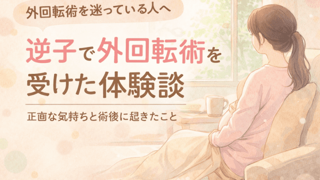 育児戦略 【体験談】逆子で外回転術を脊椎麻酔で受けたあと、1%以下と言われる術後頭痛になった話 2026年3月5日 ゆうちき 逆子と診断され、「外回転術」という選択肢を提示されたとき、私は正直、何が正解なのかわからなくなった。 「外回転術」と調べると、出てく …